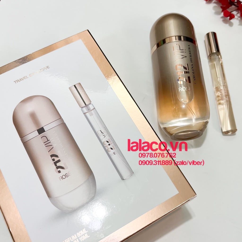 Bộ Nước Hoa Nữ - Gift set Carolina Herrera 212 VIP Rose EDP 2pcs ( EDP 80ml & EDP 10ml )