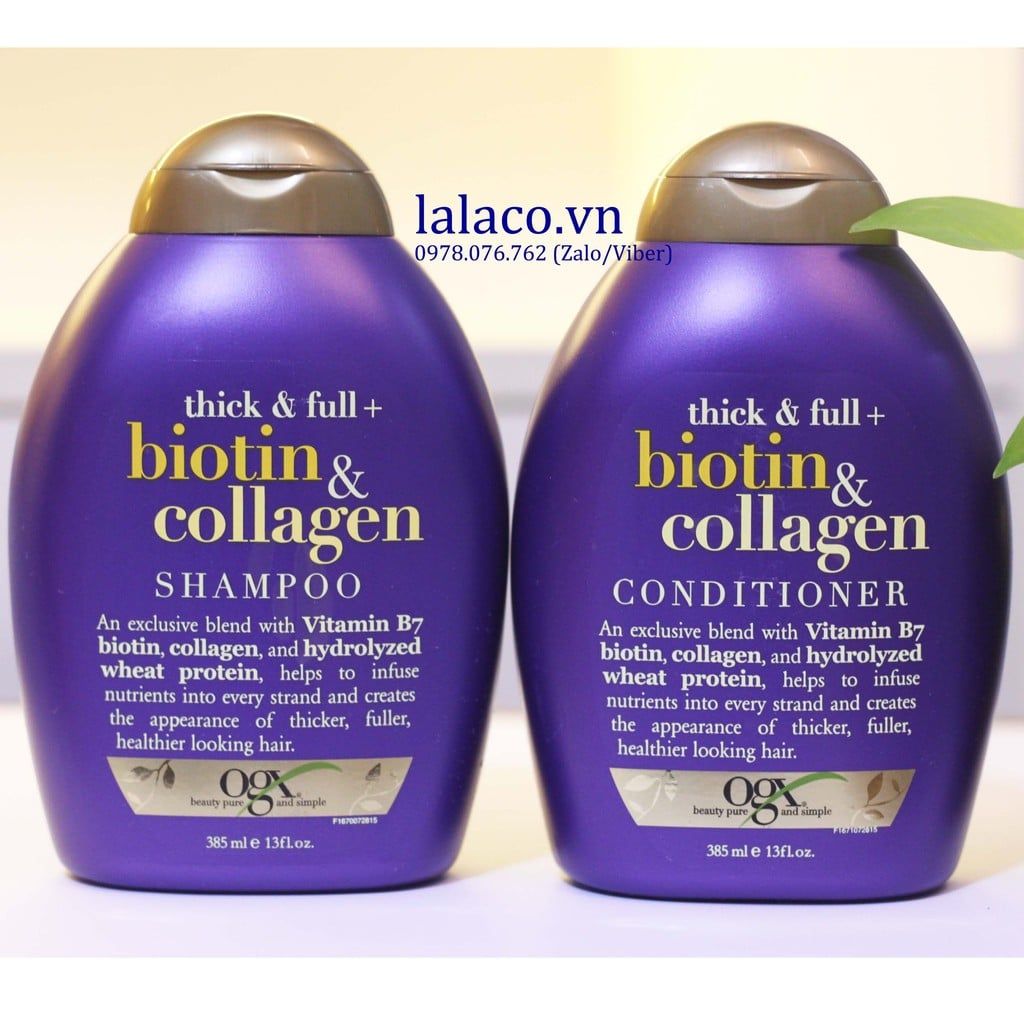 Dầu gội Organix Thick & Full Biotin & Collagen có hợp chất ProVitamin B7 và biotin, tạo ra các chất dinh dưỡng thấm sâu, phục hồi từ bên trong sợi tóc.