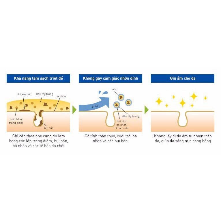 Ưu điểm: Tẩy trang và dưỡng ẩm, dùng được cho cả mặt, mắt và môi.