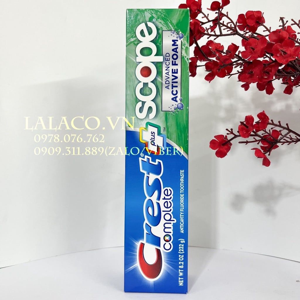 4. Crest Complete Extra Whitening Scope Advanced Active Foam #232gr: bổ sung thêm độ tươi mát Scope có tác dụng tiêu diệt 99,9% vi khuẩn gây hôi miệng, làm trắng nhiều hơn 35% và chứa nhiều hơn 30% bọt Scope Active Foam hàng ngày …mang lại cho bạn hơi thở thơm mát và sảng khoái.