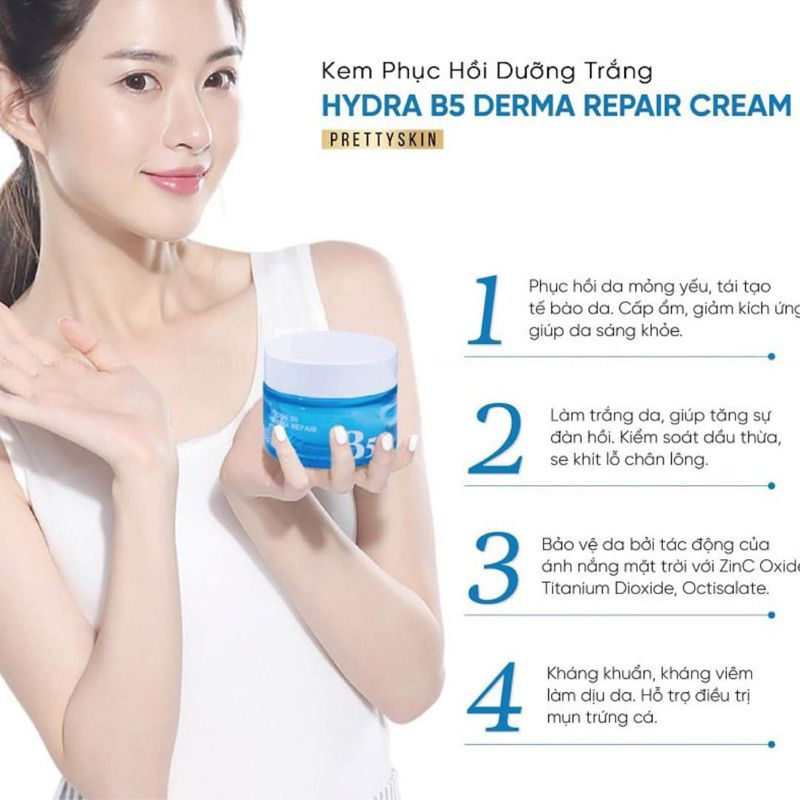 Kem dưỡng phục hồi Prettyskin Hydra B5 Derma Repair Cream tiếp nối sự thành công ấn tượng trên thị trường làm đẹp của serum B5 và kem chống nắng B5. Là bước cuối vô cùng cần thiết trong chu trình skincare mỗi ngày của bạn giúp phục hồi những hư hại, tổn thương trên da đồng thời nuôi dưỡng làn da trắng sáng từ sâu bên trong mỗi tế bào, có khả năng bảo vệ da vững chắc khỏi ánh nắng mặt trời, các tia độc hại khác.