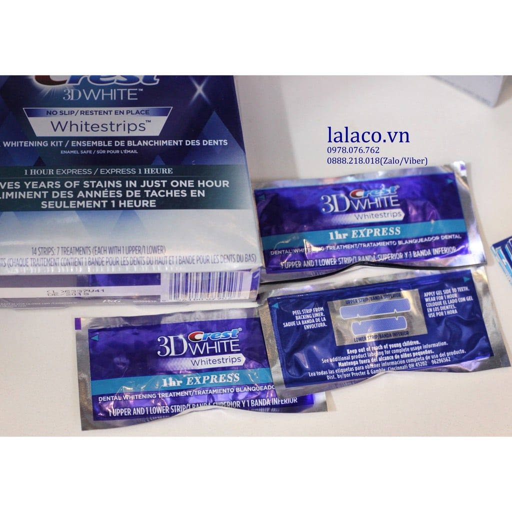 Crest 3D White 1-Hour Express là sản phẩm miếng dán làm trắng răng đặc biệt của Crest với sức mạnh làm trắng tương tự như dòng sản phẩm miếng dán mạnh nhất hiện nay Crest 3D White Professional Effects, nhưng được thiết kế để sử dụng trong trường hợp người dùng cần làm trắng cấp tốc trong ngày, và chỉ cần dán 1 lần mỗi tháng. Crest 3D White 1-Hour Express có khả năng loại bỏ mảng bám gây vàng răng lâu năm và giúp bề mặt răng trở nên trắng sáng rõ rệt chỉ sau hơn 1 giờ sử dụng. Hoạt chất làm trắng được chứng nhận bởi FDA Hoa Kỳ của Crest 3D White 1-Hour Express an toàn tuyệt đối cho men răng.