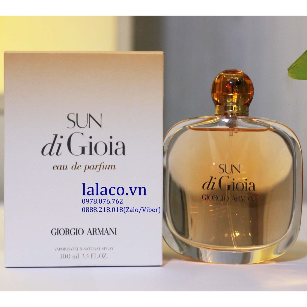 Sun Di Gioia là mùi hương nồng nàn, nữ tính như ánh sáng mặt trời của ngày hè thư giãn như ánh nắng đầu tiên vừa chạm đến làn da. Hương hoa lan, ambroxan tạo sự thanh thoát, quyến rũ và hương cuối kết thúc với sự dịu ngọt của lan nhiệt đới khiến lòng người không không khỏi rung động.