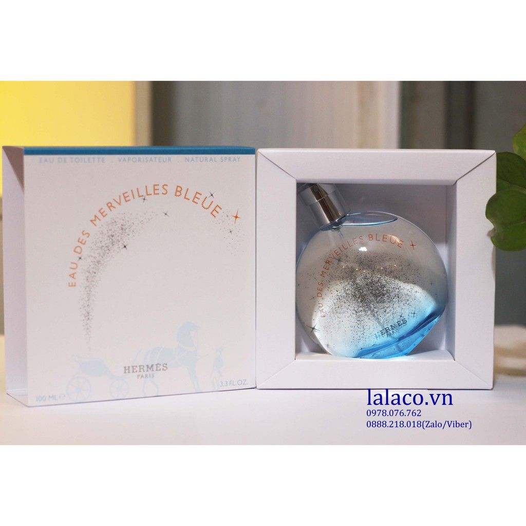 Nước hoa Eau Des Merveilles Bleue của Hermès là nước hoa dành cho nữ, mùi hương mới này được sáng chế bởi Christine Nagel và được ra mắt năm 2016. Màu sắc xanh tươi tắn đem lại cảm giác sản khoái nhưng trong hương thơm, màu xanh ám chỉ một mùi hương với ý nghĩa đặc biệt, và trong trường hợp này mô tả theo màu sắc: “sự kỳ diệu của đại dương và màu sắc của bầu trời”. Sự kết hợp của hoắc hương, các note gỗ và note hương biển tạo cảm giác tươi mát nhưng lại có chút gì đó trầm lắng, tưởng như nó là loại nước hoa dành cho nam giới vì nó mang các yếu tố thể thao tươi trẻ nhưng thực sự phụ nữ có thể dễ dàng khoác nó lên cơ thể.