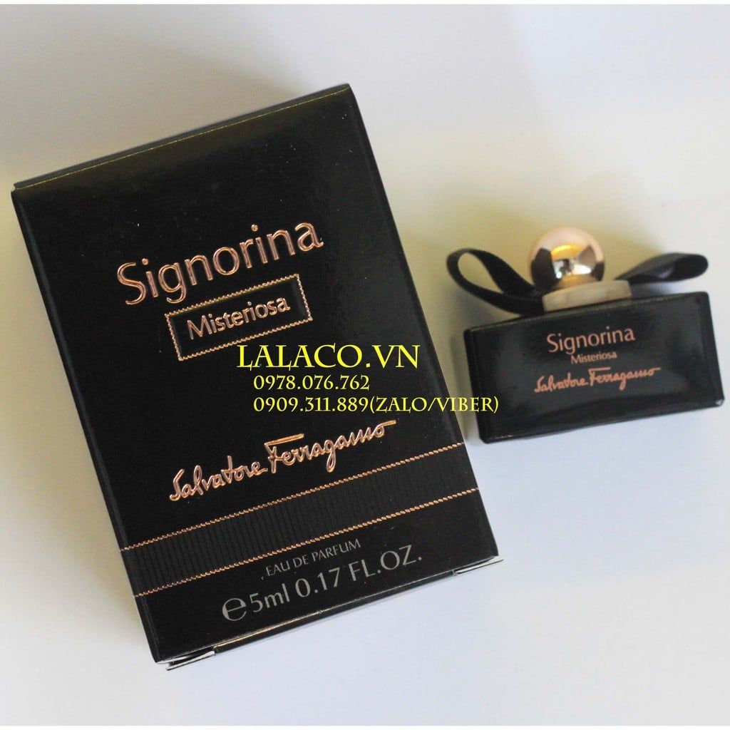 Vẫn tương tự thiết kế quen thuộc của dòng hương Signorina, Signorina Misteriosa đầy phá cách, ma mị với màu đen tuyền từ thân chai đến chiếc nơ sang trọng trên cổ chai