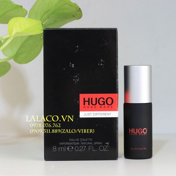 Hugo Just Different mở ra hương thơm quyến rũ của táo kết hợp với hương vị bạc hà mát lạnh. Lớp hương giữa là sự kết hợp hài hòa của lan Nam Phi với một ít húng quế và rau thơm, khiến cho hương thơm thêm phần độc đáo. Tòa bộ hương thơm tiến về lớp hương cuối mang phong vị ấm áp và mang hương gỗ nhồ vào các hương như: hoắc hương, gỗ cashmeran, trầm hương và nhựa labdanum. Hugo Just Different mang nét đặc trưng riêng bởi sự kết hợp bất ngờ của các lớp hương khác nhau, điều này đã tạo nên sự tươi mát và hiện đại nhưng nhẹ nhàng và ấm áp khi lớp hương cuối còn lưu lại trên cơ thể.