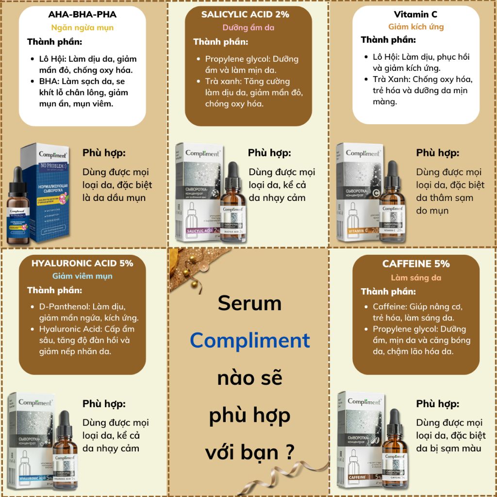 3. Serum Vitamin C AHA BHA PHA HA Compliment Tinh Chất Dưỡng Cấp Ẩm Trắng Da Giảm Mụn phù hợp với ai, với đối tượng nào
