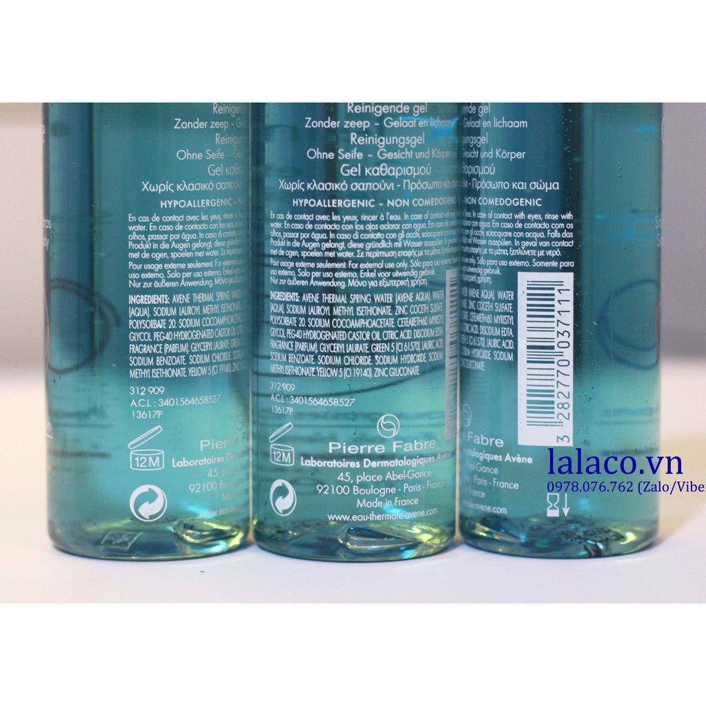 Sữa rửa mặt Avène Eau Thermale Cleanance Gel Nettoyant chiết xuất Cucurbita pepo, kẽm gluconat, nước khoáng Avène, cetrimonium bromure, glycerol, chất nền làm sạch êm dịu.