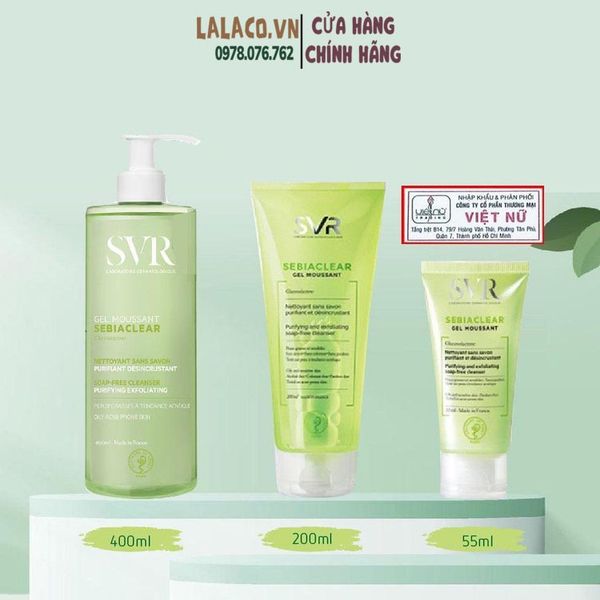 Sữa rửa mặt SVR cho da dầu, mụn không có xà phòng SVR Sebiaclear Gel Moussant 55ml /200 ml /400ml