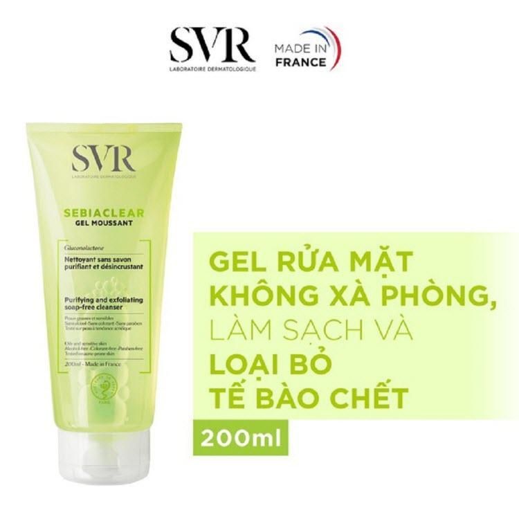 Sữa rửa mặt SVR SEBIACLEAR Gel Moussant là một sản phẩm làm sạch không chứa xà phòng dành cho da hỗn hợp đến da dầu, da mụn, da nhạy cảm giúp làm sạch, nhẹ nhàng làm thông thoáng làn da. Khả năng tạo bọt mịn giúp loại trừ các chất bẩn và lượng bã nhờn dư thừa mà không làm khô da.Sữa rửa mặt svr Có thể rửa sạch dễ dàng, mang lại một làn da sạch, tươi mát và khô thoáng.