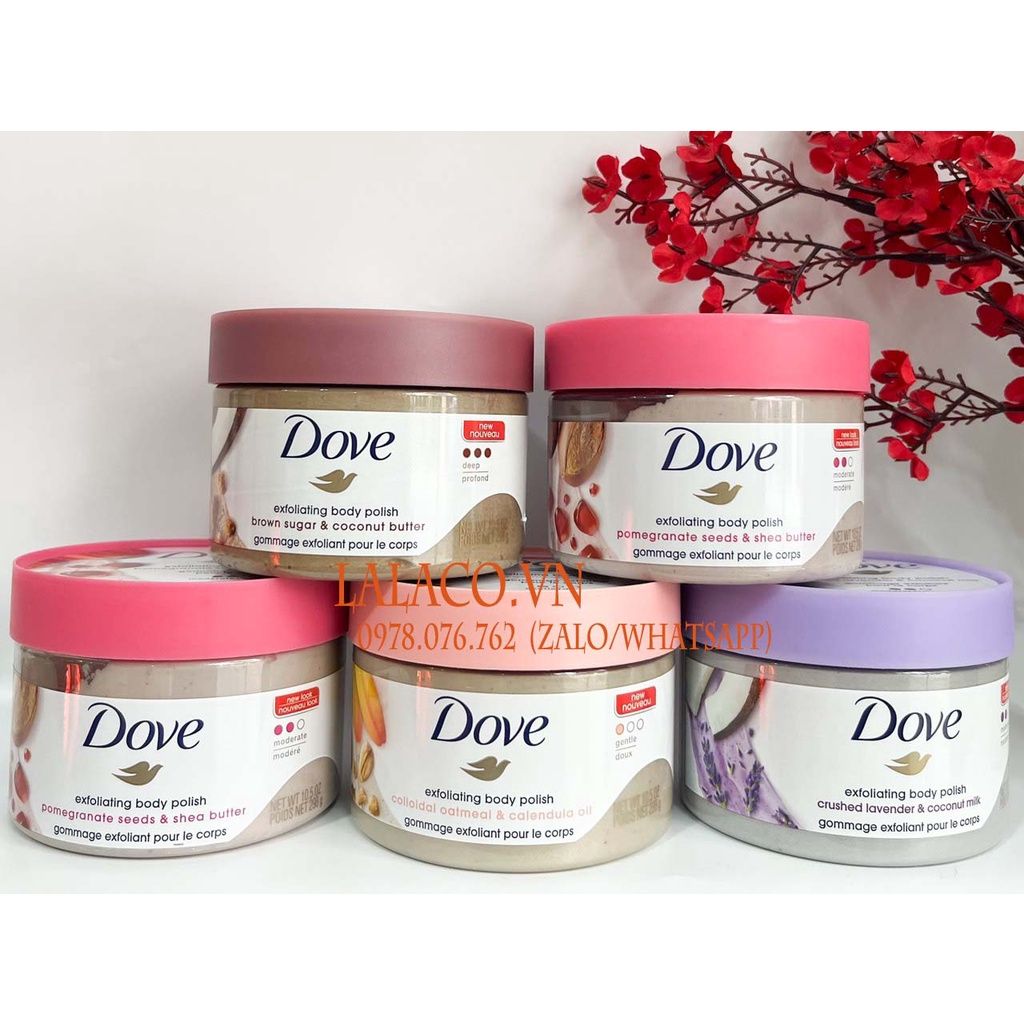 Tẩy da chết Dove Exfoliating Body Polish Body với kết cấu kem mịn, không tổn hại da khi massage nhưng lại dễ dàng thấm vào da cùng với công thức từ bơ hạt mỡ và hạt lựu tạo nên mùi hương đình đám. Giúp dưỡng ẩm cho da mịn màng, phục hồi những vùng da khô nứt nẻ và thúc đẩy sản sinh collagen chống lão hóa, dưỡng ẩm