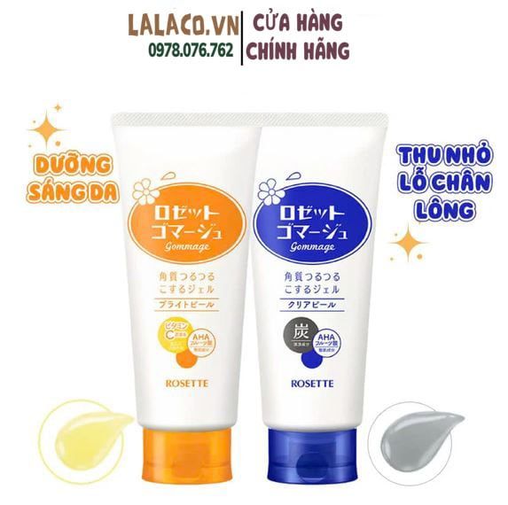 Gel tẩy da chết Rosette 120g được chiết xuất từ axit trái cây giúp làm sạch tế bào chết trên mặt, ngực, đầu gối và gót chân, cho làn da mịn màng như lụa.